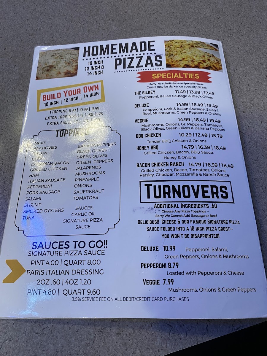 Pepperoni, Sausage, Italian Sausage, Salami, Beef,Mushroom, Green Peppers, Onions.
